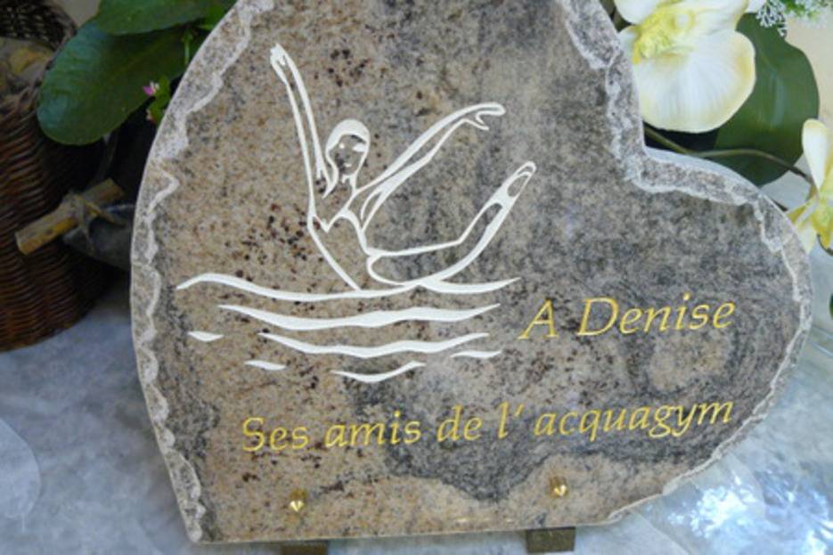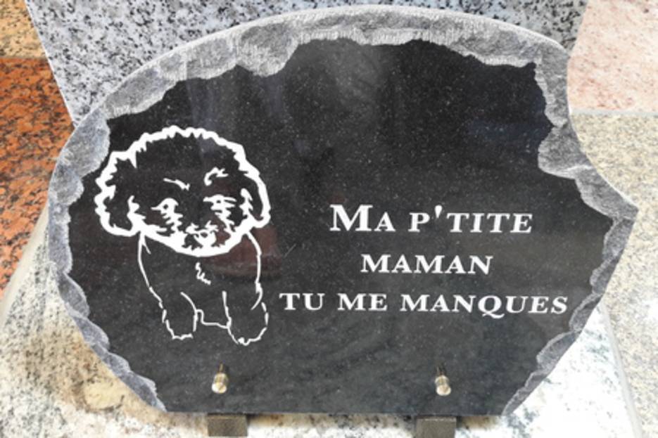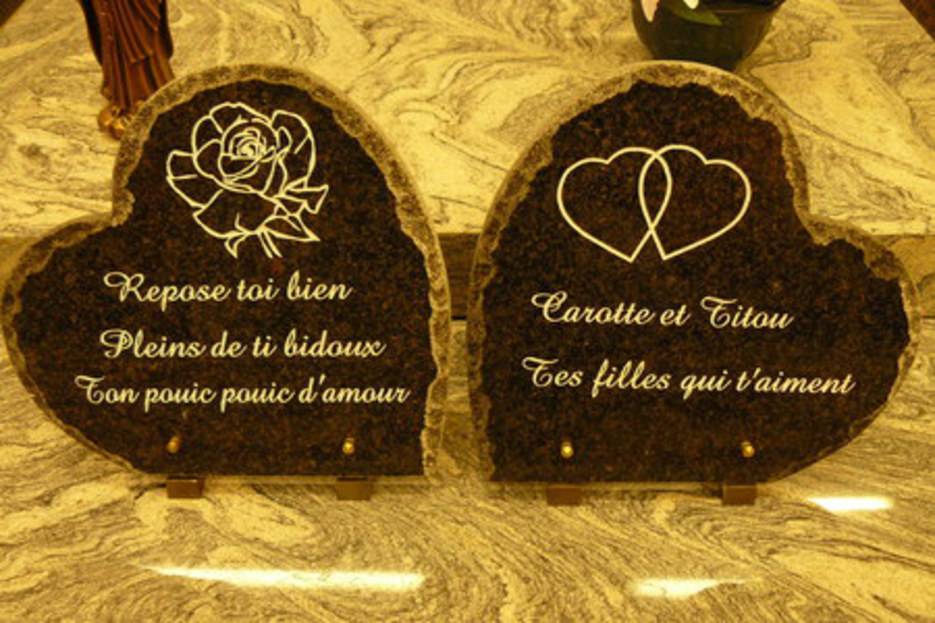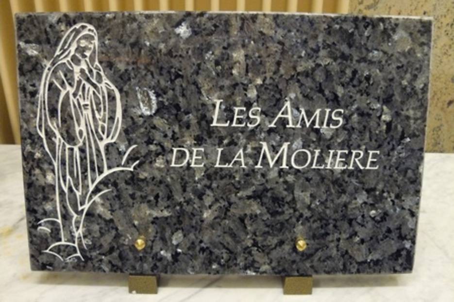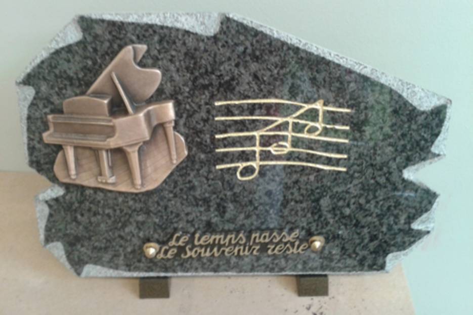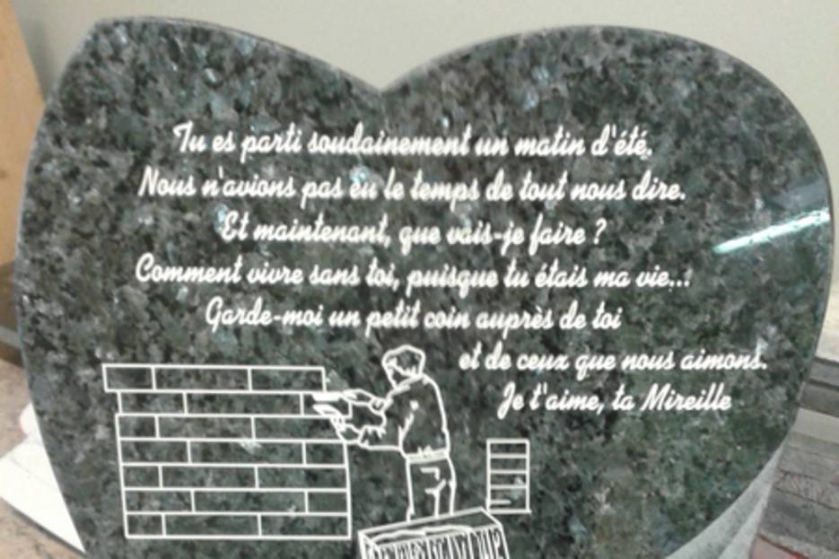Pour vos besoins en marbrerie funéraire , nous réalisons sur demande des plaques personnalisées , texte, motif gravé