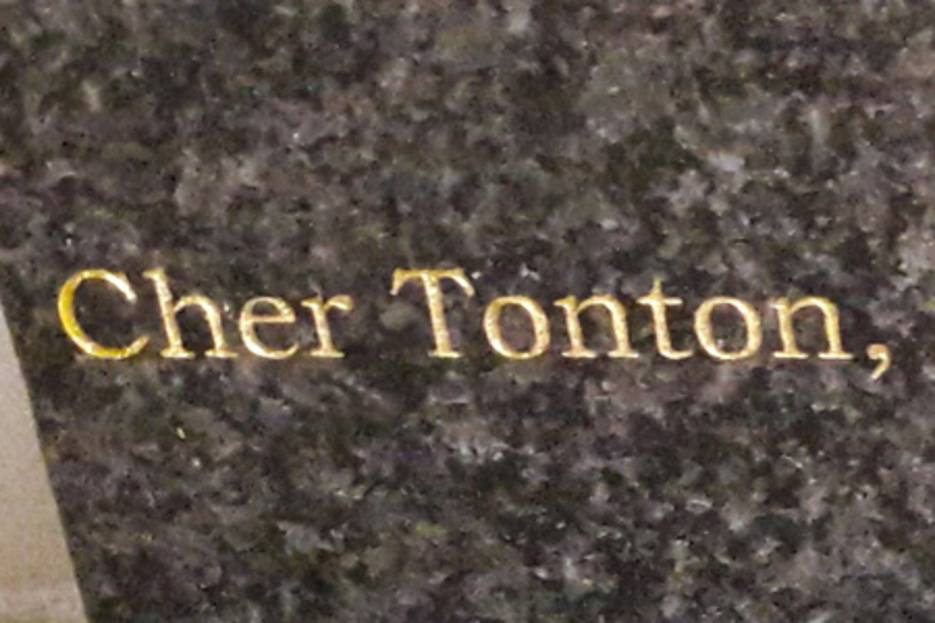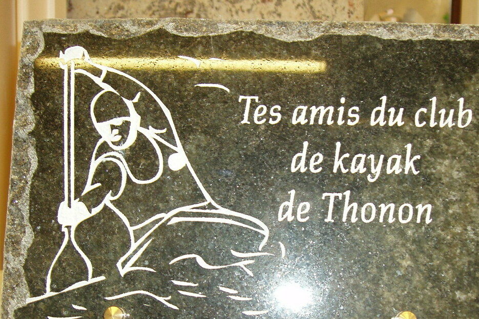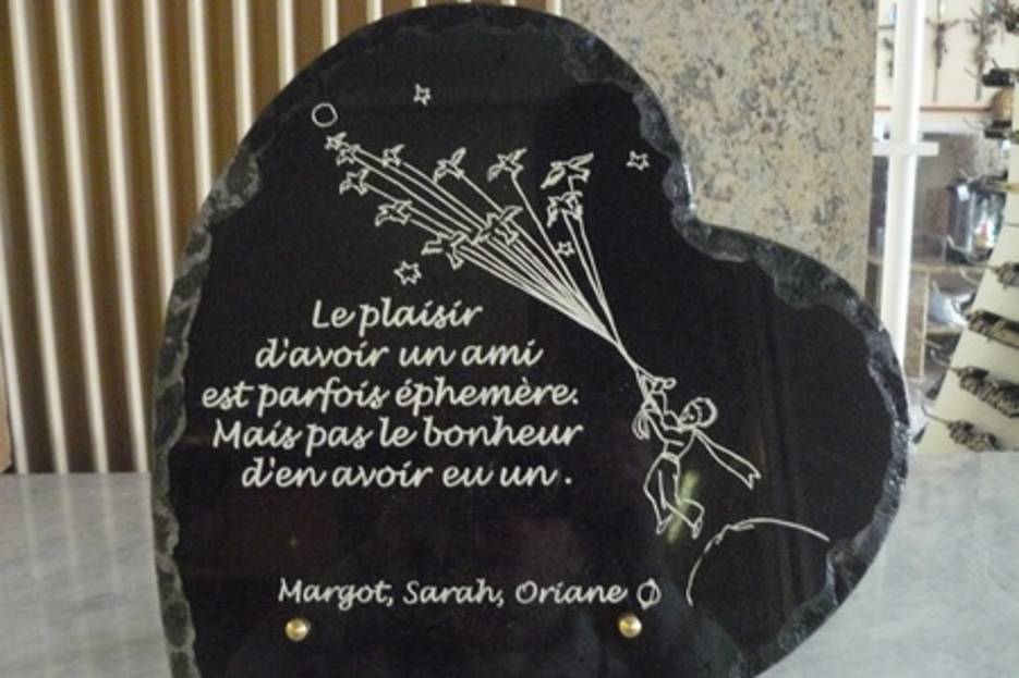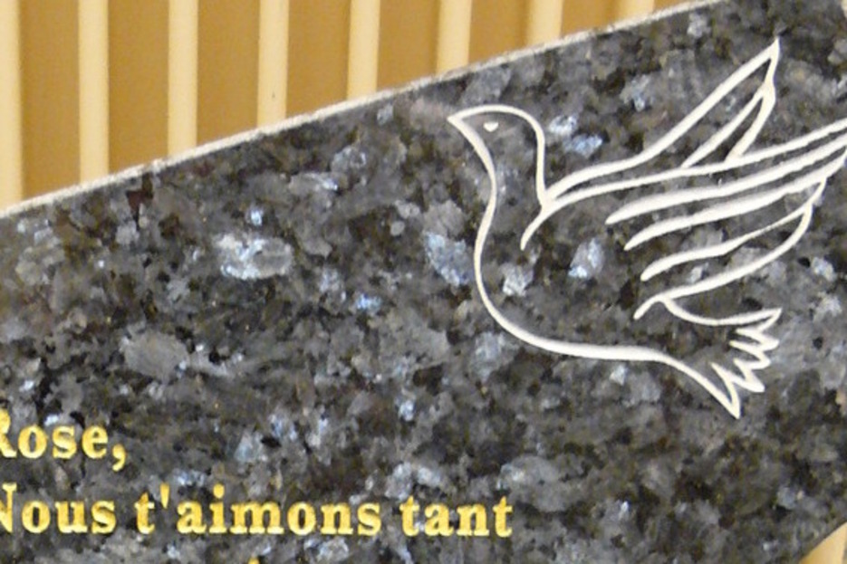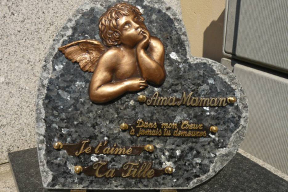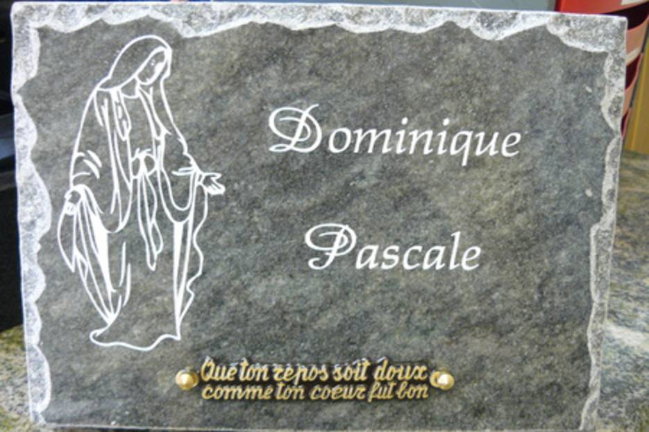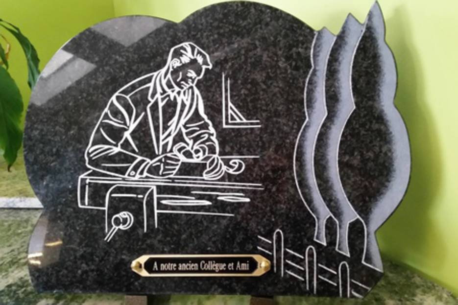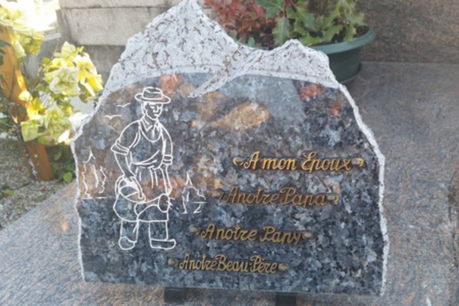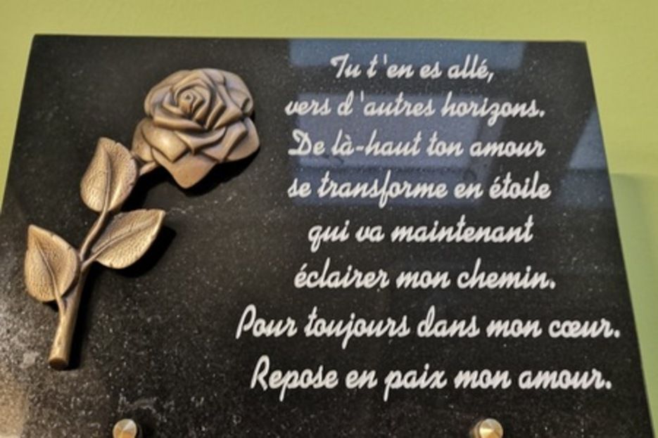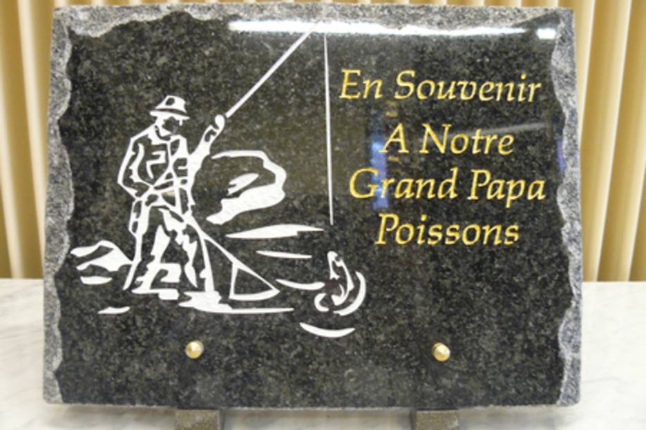 Pour vos besoins en marbrerie funéraire , nous réalisons sur demande des plaques personnalisées , texte, motif gravé